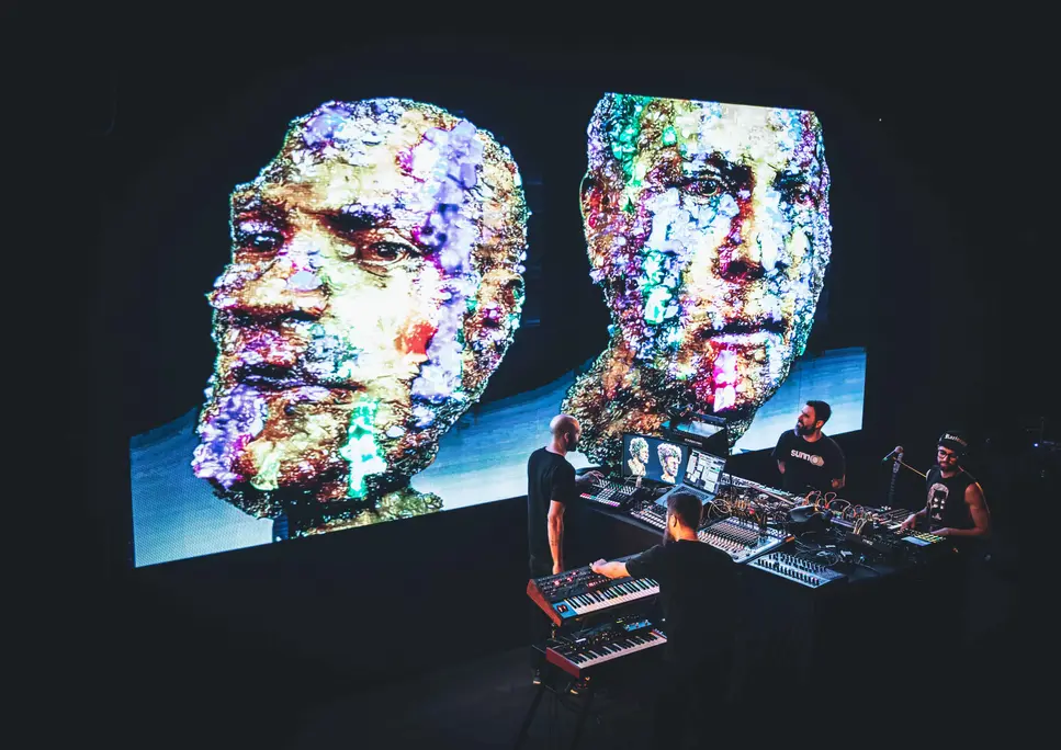 MOODBOARD LIVE CINEMA is a realtime audiovisual performance at the melting digital art, artificial intelligence, and experimental electronic music. This experience features real-time visual artist Bruno Bez collaborating with electronic music collective The Sound of Space.