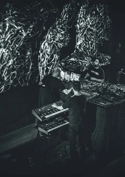 Combining realtime live performance visuals with modular synthesis and experimental soundscapes. Embraces pure experimental expression, reflecting our collective growth as artists. The spontaneous nature of this unrehearsed jam session celebrates years of parallel artistic development, allowing for genuine interactions between visual and sonic elements.
