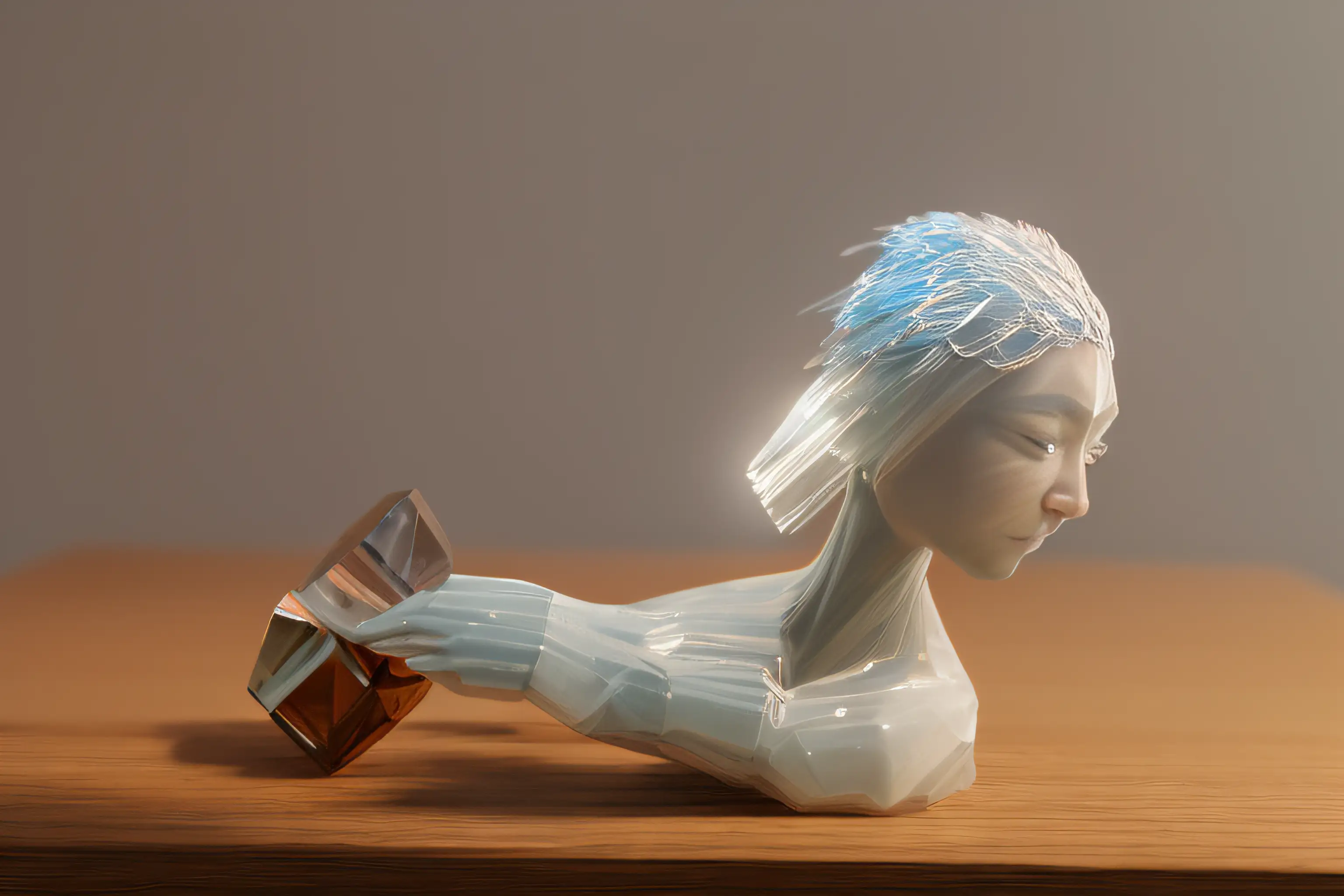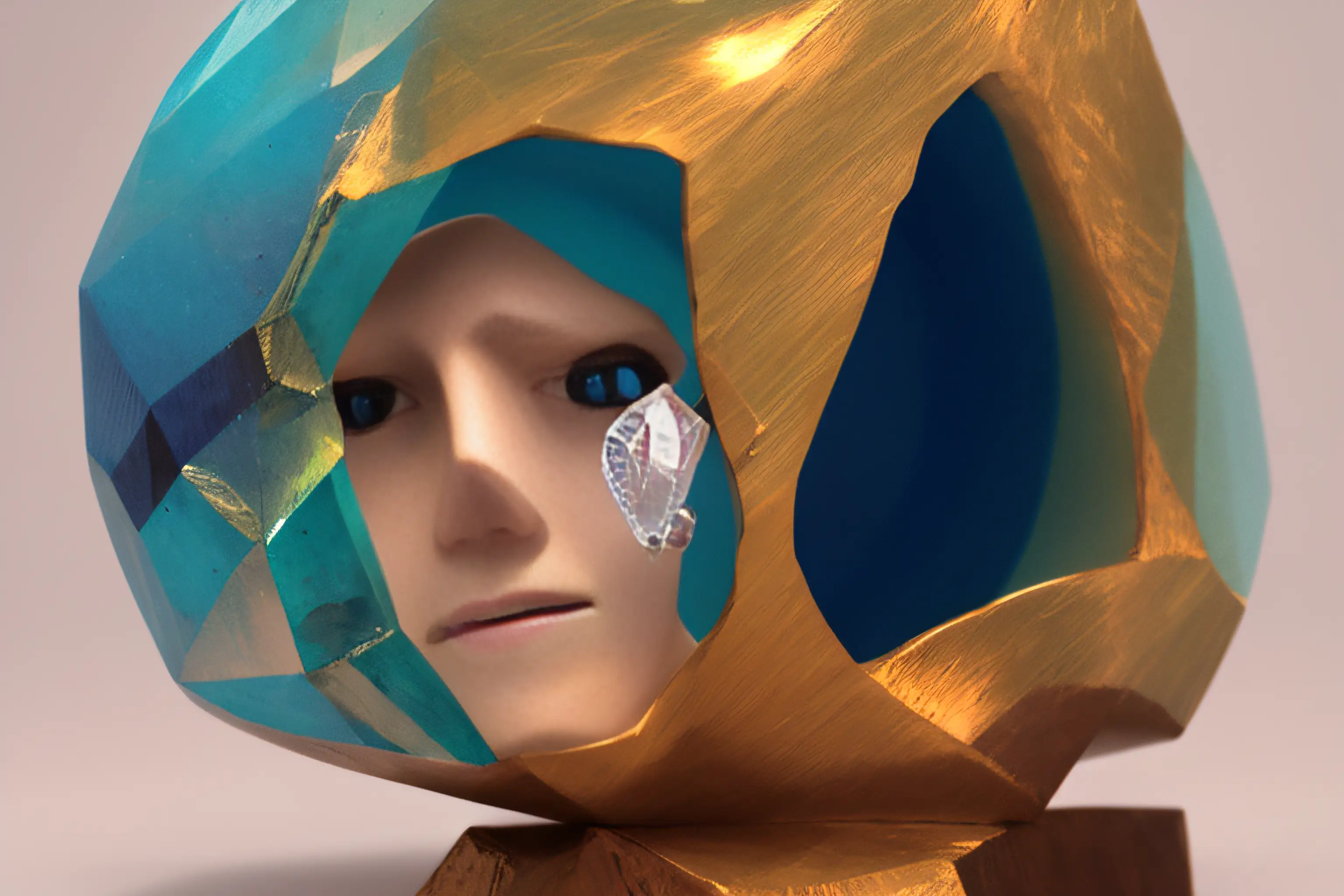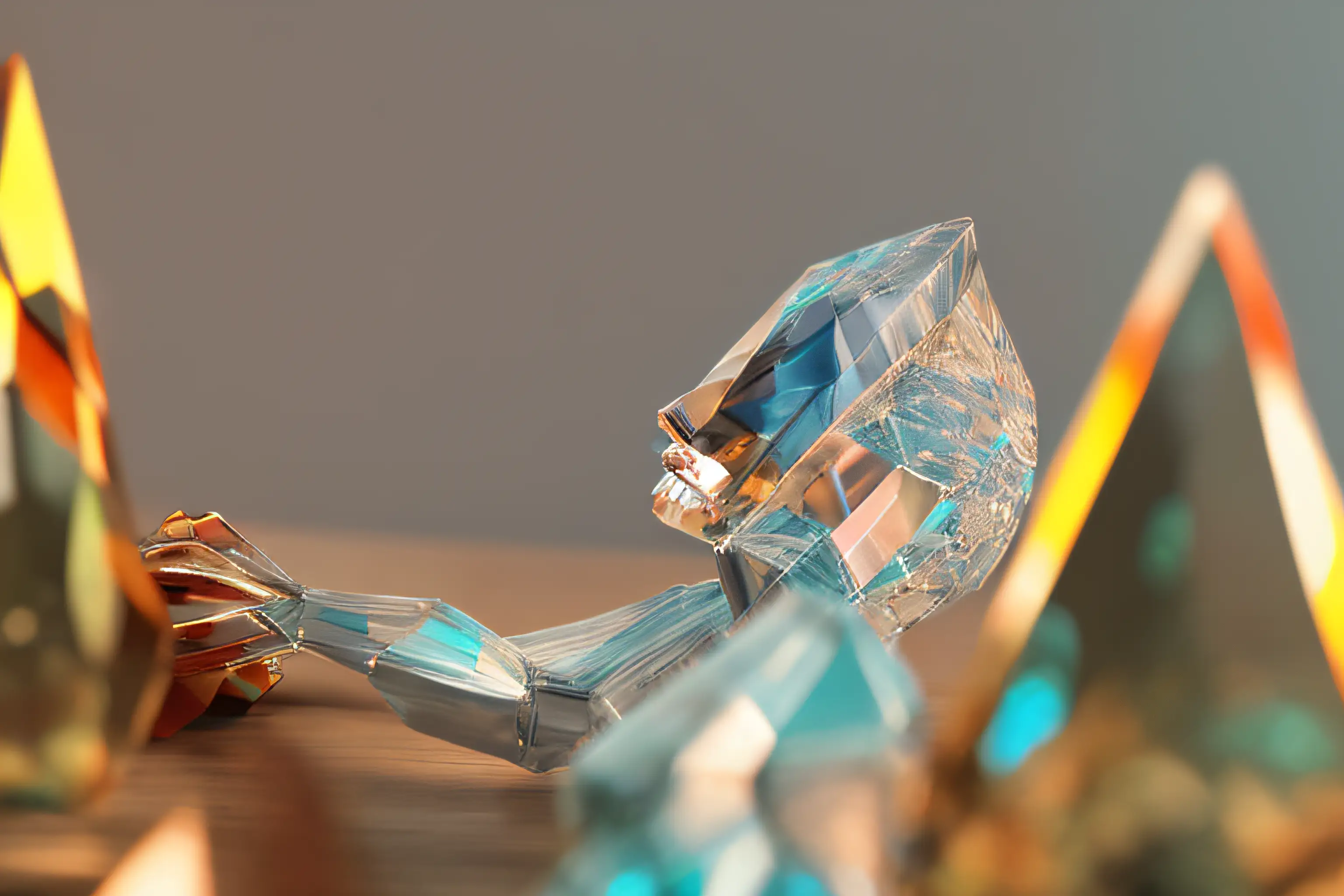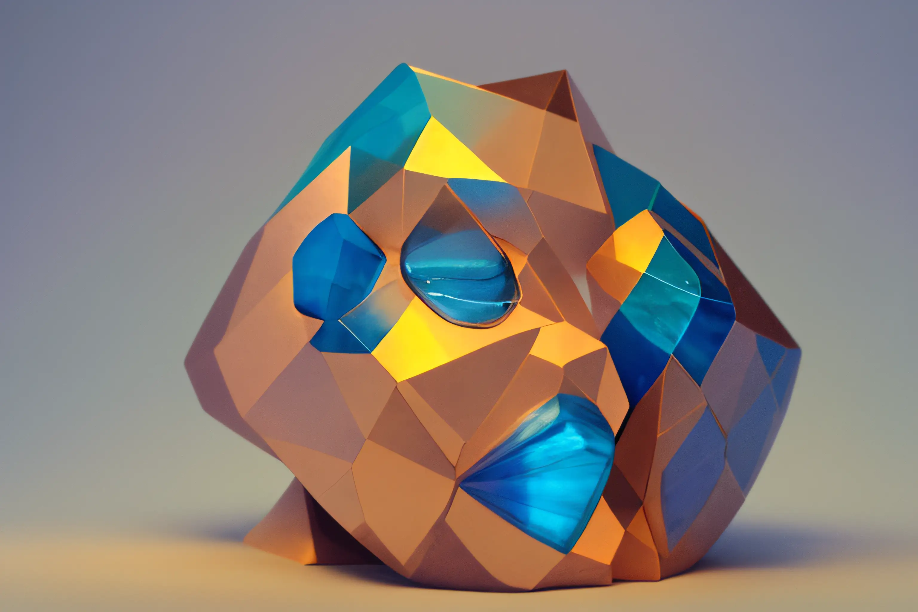 "Sentience Inanimate" offers a transcendental visual saga where the ordinary bounds of sculpture are reimagined into a living narrative of complex geometric morphs. Each piece in the series embodies a unique consciousness, articulated through the intricate interplay of crystalline facets and human-like forms. From the gentle emergence of thought in the assertive stance of unyielding resolve, the sculptures stand as monuments to the myriad aspects of sentient existence.